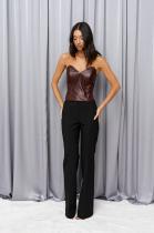 Корсет из эко-кожи с узкими пластинами и вырезом ANNETE A2051