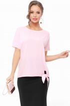 Блузка с коротким рукавом и завязками — нарядная модель, которая добавит разнообразия как в повседневный, так и в офисный гардероб. Свободный фасон с округлым вырезом прекрасно смотрится на любой фигуре, не сковывает движений и дарит чувство легкости. Изюминкой блузки становятся завязки сбоку, которые можно завязать как на узел, так и на модный в этом сезоне бант, чтобы добавить образу женственные нотки. Модель выполнена из качественной, приятной к телу вискозной ткани, которая хорошо пропускает воздух, держит форму и не скатывается. Чтобы блузка долго радовала вас красотой и качеством, рекомендуется стирать ее в бережном режиме без отжима при температуре до 30 градусов и сушить в расправленном виде. Обмеры изделия Длина: