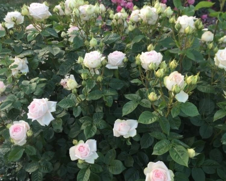 С плотной, глянцевой, темно-зелёной листвой, которая идеально гармонирует с нежностью цветков, и стройным вертикальным кустом, '