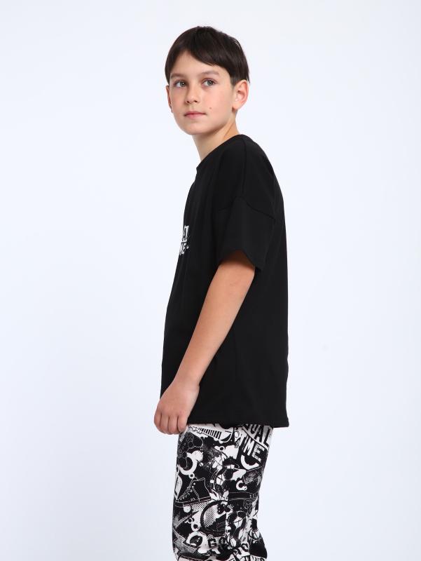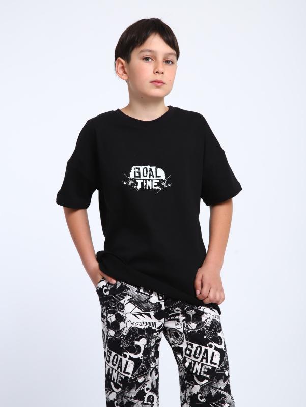 Футболка прямого кроя, комбинированная, рукав реглан. Брюки на резинке, с карманами в боковых швах.