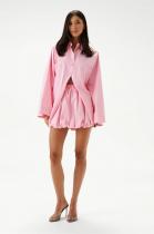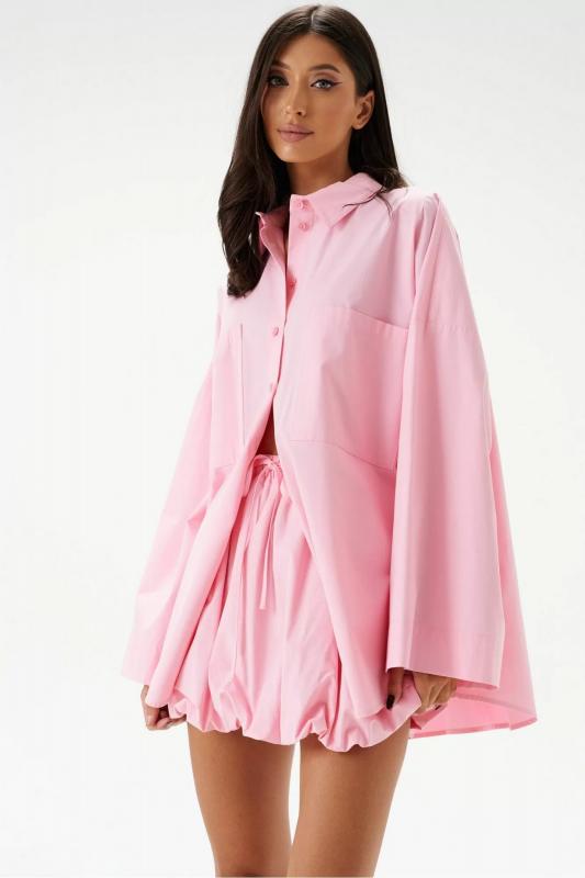 Юбка-мини. Выполнена из хлопковой ткани нежно-розового цвета. Характеристики: пояс на резинке с кулиской, подкладка, низ изделия на резинке. Длина 41 см