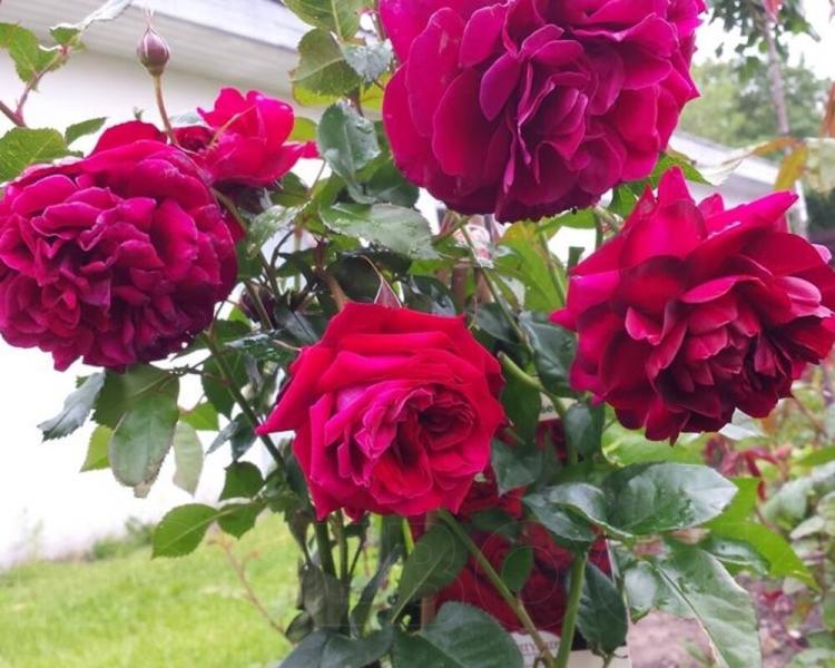 Роза плетистая Фаррука — это роскошный сорт, который привлекает внимание своими бархатными цветами глубокого красно-бордового оттенка. Цветы имеют красивую чашеобразную форму и украшаются кокетливыми ярко-желтыми тычинками, что придает им особую выразительность. Густомахровые и крупные, диаметром 10-15 см, эти цветы держатся на кусте около 18-20 дней, не выгорая на солнце, и имеют легкий, нежный аромат.
