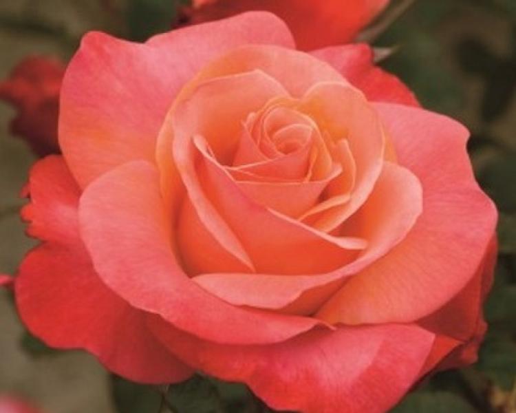 Роза Флорибунда Аптаун Гёл – впечатляющий сорт, обрадующий своими большими и красивыми кораллово-розовыми цветками с более насыщенным кораллово-оранжевым центром. Эти густомахровые цветки имеют более 41 лепесток и достигают диаметра 10-12 см, собраны в небольшие соцветия. Они придают кусту роскошный и элегантный вид.