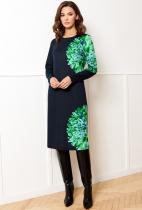 Стильное платье прямого силуэта. Перед с V-образным вырезом горловины и двумя накладными карманами. В среднем шве спинки обработана застёжкка на потайную молнию. Рукава втачные двушовные, линия талии подеркивается поясом с пряжкой из основной ткани... . .