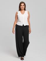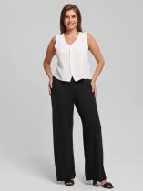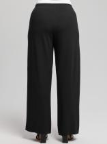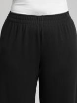Брюки женские из гладкокрашеного фактурного трикотажного полотна в «рубчик», свободного кроя, без подгибки нижних срезов, с широкой эластичной тесьмой по талии. Изделие выполнено из неосыпающейся ткани, что дает возможность регулировать длину самостоятельно.