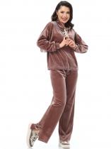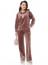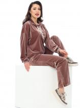 Изготовлен из мягкого и приятного на ощупь бархата, который обеспечивает комфорт и легкость в носке. Бархатная ткань хорошо сохраняет тепло, что делает костюм подходящим для любых погодных условий. Костюм состоит из двух частей: свитшот и брюк. С помощью кулиски можно регулировать плотность прилегания. Брюки оснащены эластичной резинкой на талии, что обеспечивает комфортную посадку и свободу движений. Эластичный пояс адаптируется к разным типам фигуры, обеспечивая максимальное удобство при занятиях спортом. Прямой крой брюк и отсутствие лишних деталей делают их удобными для любых видов активности. Уход за спортивным костюмом требует бережной стирки при температуре 30 градусов. Это позволяет сохранить яркость цвета и мягкость ткани на длительное время. Рекомендуется избегать использования агрессивных моющих средств и отбеливателей, чтобы предотвратить повреждение ткани и потускнение цвета. Обмеры изделия Свитшот: