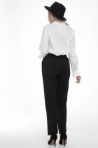 Современная модель классических женских брюк с имитацией застежки и поясом на резинке. Благодаря сочетанию вискозы и эластана в составе ткани, брюки практически не мнутся, обладают износостойкостью, обеспечивают идеальный комфорт. Пояс притачной, по переду классический, по спинке вставлена резина шириной 4 см для плотного прилегания в области талии. В боковых швах удобные карманы.
